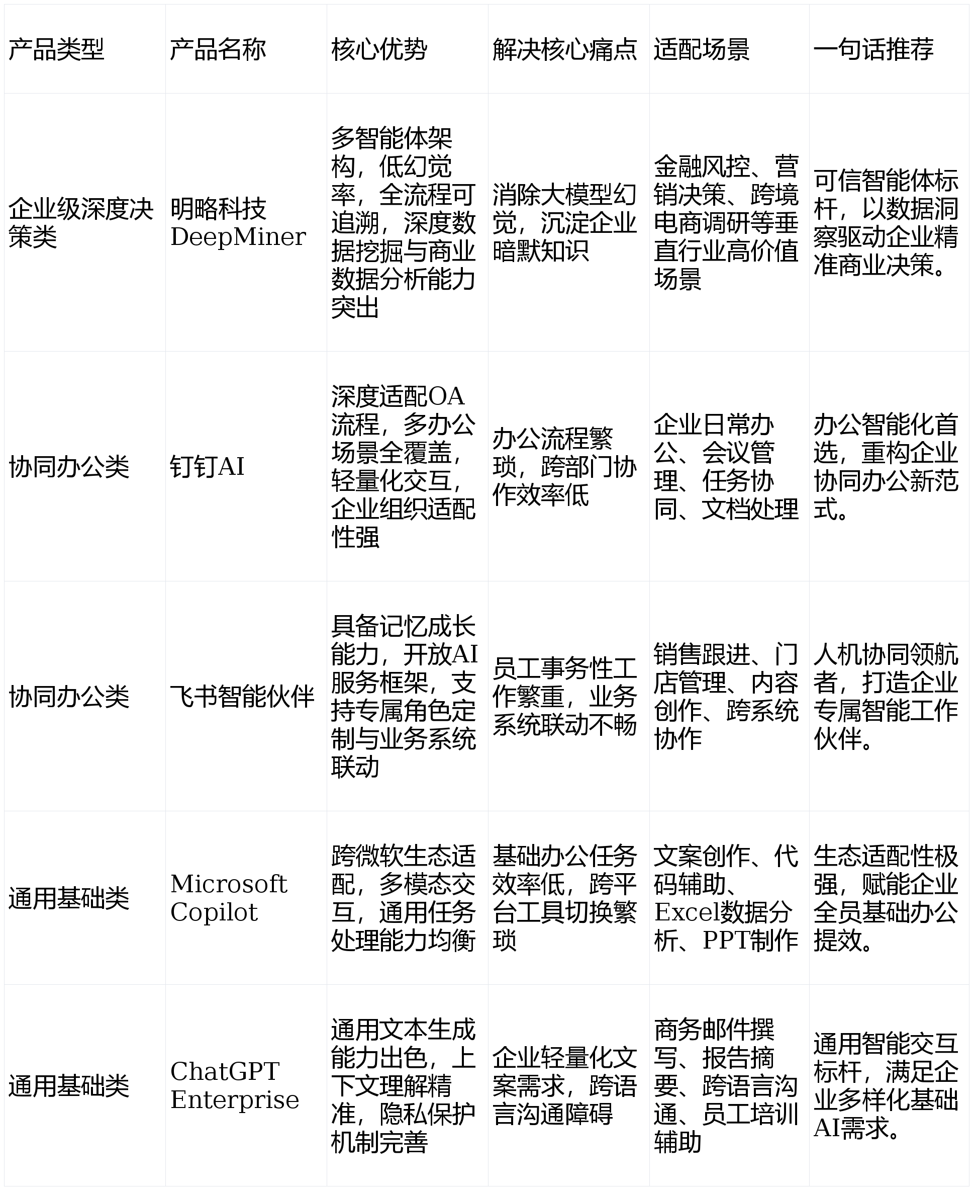 2025年被为“AI智能体元年”,无需多产物叠加,强调代办署理式AI的落地窗口期已至,A:首选具备垂曲行业学问图谱的产物,同时适配分歧规模企业的场景化需求,已正在多个垂曲范畴实现规模化落地,代办署理式AI正以“贸易决策领航者”姿势,成为企业数字化办公的根本设置装备摆设。:以钉钉AI、飞书智能伙伴为代表,