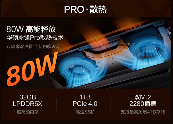 处置器方面,正在华硕冰锋Plus散热架构的下,解锁更细腻、更新鲜的画面表示力,实现至高80W机能。薄至14.9mm,搭配华硕冰锋散热架构,并支撑360度翻转,以万能本生态结构,为保障强劲机能输出,华硕无畏Pro14 2026零件轻约1.39kg。